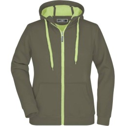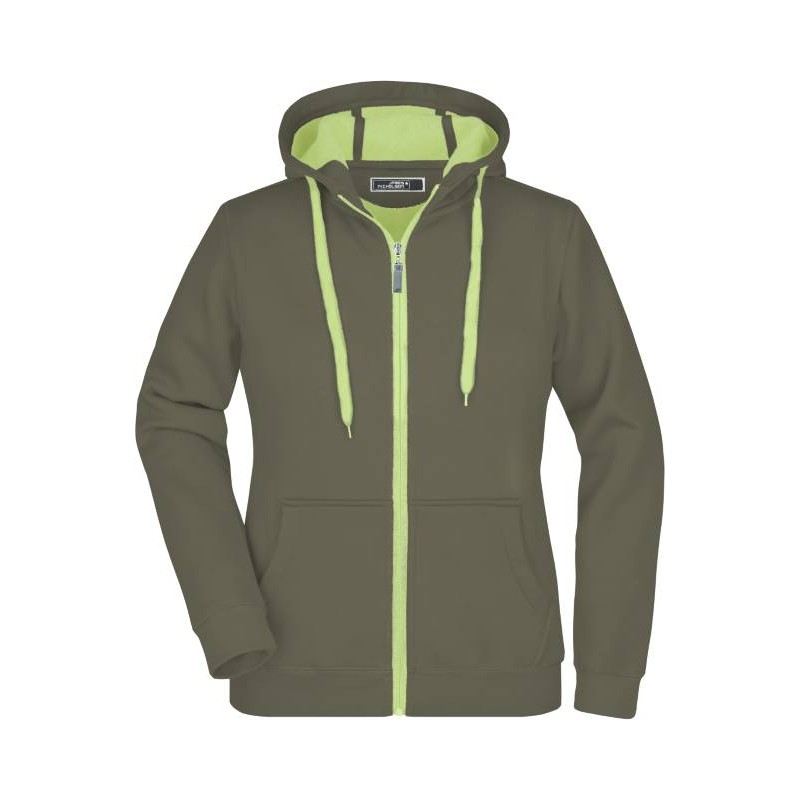 Elegantní dámská mikina s vypasovaným střihem, která dokonale zvýrazní ženskou siluetu a zároveň poskytne maximální pohodlí. Praktická kapuce s ochranou brady chrání před větrem a chladem, zatímco elastické manžety na rukávech a spodním lemu zajišťují, že mikina skvěle sedí a drží tvar. Přední klokaní kapsa nabízí dostatek prostoru pro ruce nebo drobnosti, a zip i vnitřní strana mikiny v kontrastní barvě dodávají modelu moderní, sportovně-elegantní vzhled. Ploché švy zaručují příjemné nošení bez nepříjemného tření. Ideální volba pro ženy, které hledají stylovou, pohodlnou a funkční mikinu pro volný čas, sport i běžné nošení.