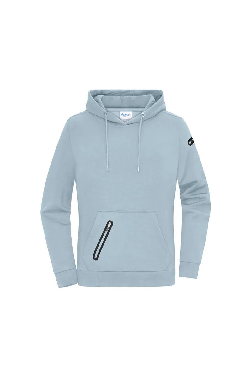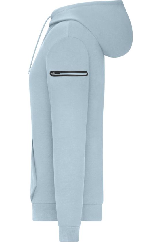 Dámská mikina s lehce vypasovaným střihem je ideální volbou pro volný čas i každodenní nošení. Pohodlný materiál a podšitá kapuce se šňůrkou poskytují příjemné teplo i ochranu před chladem. Praktická klokaní kapsa doplněná o další kapsu na zip nabízí dostatek prostoru pro drobnosti, které chcete mít po ruce. Na levém rukávu je umístěna menší kapsa na zip, ideální například pro klíče nebo platební kartu. Mikina je navržena s důrazem na pohodlí, funkčnost a ženský střih, který pěkně sedí na postavě. Lze prát na 30 °C v šetrném programu, nedoporučuje se sušení v sušičce. Skvělá volba pro ženy, které hledají stylovou a praktickou mikinu pro každodenní použití.