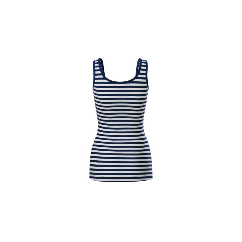 Dámské tílko Sailor top je stylový a pohodlný kousek v oblíbeném námořnickém designu. Pruhy v kombinaci bílá a námořní modrá působí svěže, nadčasově a snadno se kombinují s kraťasy, sukní i džínami. Díky strečovému materiálu je tílko příjemné na těle a přizpůsobí se pohybu.